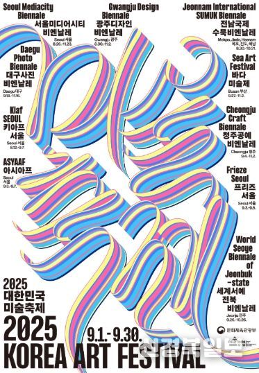 [ 신경북일보 ] 문화체육관광부는 (재)예술경영지원센터와 함께 9월 1일(월)부터 30일까지 전국 각지에서 ‘2025 대한민국 미술축제’를 진행한다. 한국 미술의 오늘을 보여주고 세계 미술계와의 만남을 이어가는 이번 축제에서는 국내 주요 비엔날레와 미술 박람회(아트페어), 미술 기관이 힘을 합쳐 만든 미술의 향연이 펼쳐진다.