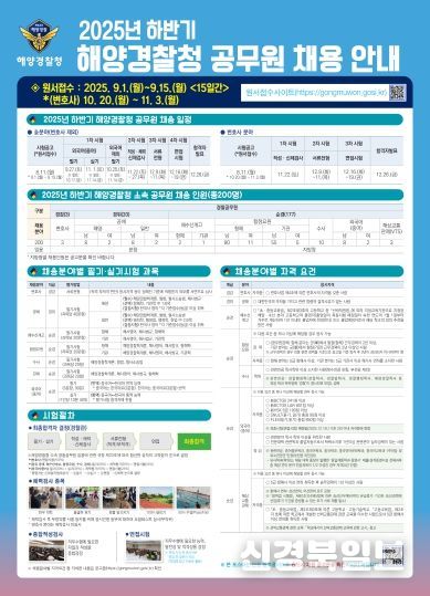 [ 신경북일보 ] 중부지방해양경찰청은 2025년 하반기 해양경찰공무원 총 30명을 채용한다고 1일 밝혔다.