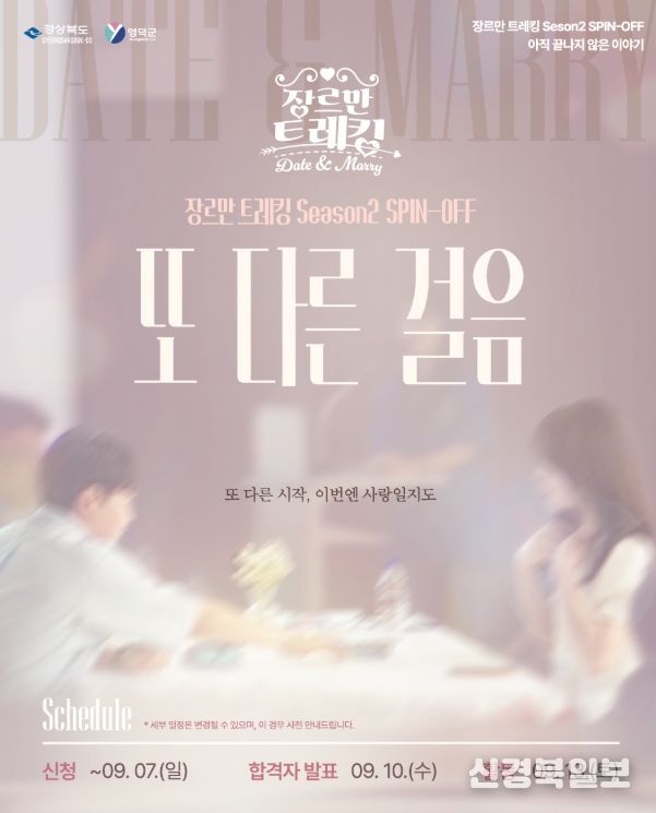 영덕군은 앞으로 이어지는 후속 프로그램 ‘또 다른 걸음’을 통해 아쉽게 커플이 되지 못한 참가자들에게 다시 만남의 기회를 제공한다. 프로그램은 관내 카페에서 하루 동안 진행되며, 오는 7일까지 참가자를 모집한다.