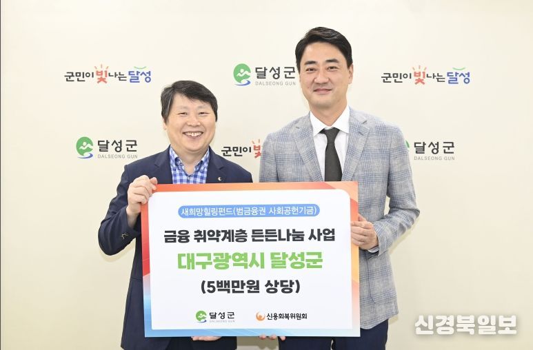 [ 신경북일보 ] 달성군은 지난 3일 신용회복위원회 대구·경북지역본부(본부장 이시형)로부터 500만 원 상당의 생필품을 전달받았다고 밝혔다.