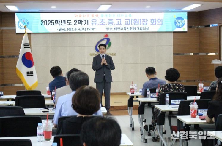 [ 신경북일보 ] 충청남도태안교육지원청은 지난 4일 태안교육지원청 대회의실에서 지원청 담당자를 포함한 관내 유‧초‧중‧고 교장(원장) 60명이 참석한 가운데 ‘2025학년도 2학기 유‧초‧중‧고 교장(원장) 회의’를 개최했다.