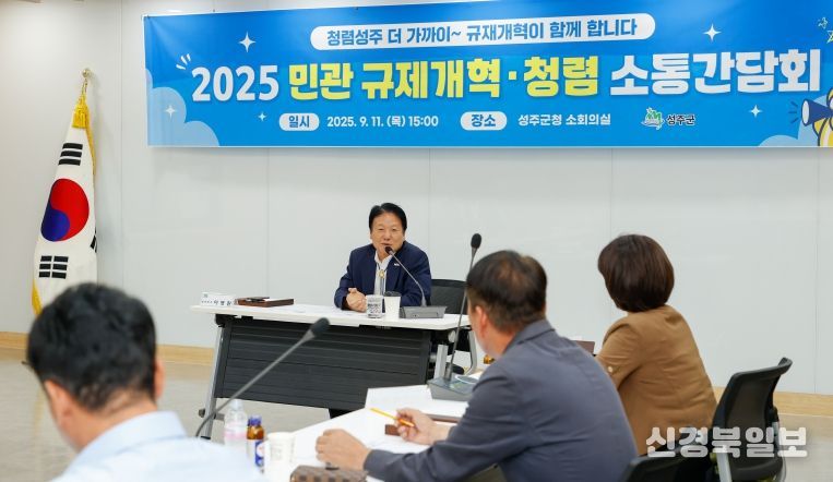 [ 신경북일보 ] 성주군은 지난 11일, 관내 6개 경제 관련 협의회 회장단과 “2025 민-관 규제개혁·청렴 소통간담회”를 개최하여 규제개혁을 위한 현장의 목소리를 들었다.