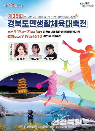 [ 신경북일보 ] 김천시는 9월 19일부터 21일까지 3일간 김천실내체육관 및 각 종목별 경기장에서 경북 생활체육 동호인들의 우정과 화합을 다지는 '제35회 경북도민생활체육대축전'이 열릴 예정이다.