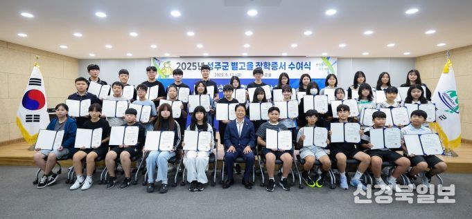 우수한 학업 성취를 이룬 학생들을 격려하고 지원하기 위해 지난 9월 12일 군청 문화강좌실에서 '2025년 성주군 별고을 장학증서 수여식'을 개최했으며, 이날 선발된 학생 가운데 각 학교를 대표하는 37명의 학생이 행사에 참석하여 영예로운 순간을 함께했다.