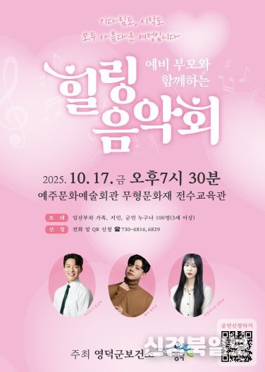 [ 신경북일보 ] 영덕군보건소는 임신과 출산의 소중함을 되새기고 가족이 함께 즐길 수 있는 장을 마련하기 위해 17일 오후 7시 30분 예주문화예술회관 무형문화재 전수교육관에서 ‘예비 부모와 함께하는 힐링 음악회’를 연다.