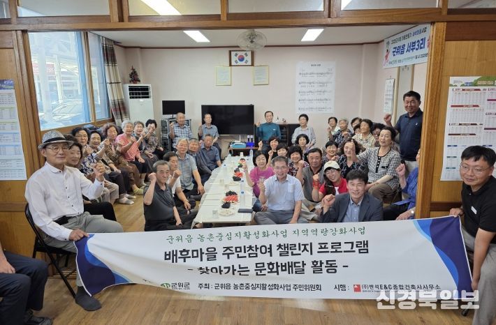 [ 신경북일보 ] 군위군은 지난 7월부터 진행해 온 군위읍 농촌중심지 활성화사업 “배후마을 찾아가는 문화복지 프로그램“인 생활문화 동아리 봉사활동을 9월 초 군위읍 서부3리 마을회관에서 진행했다.