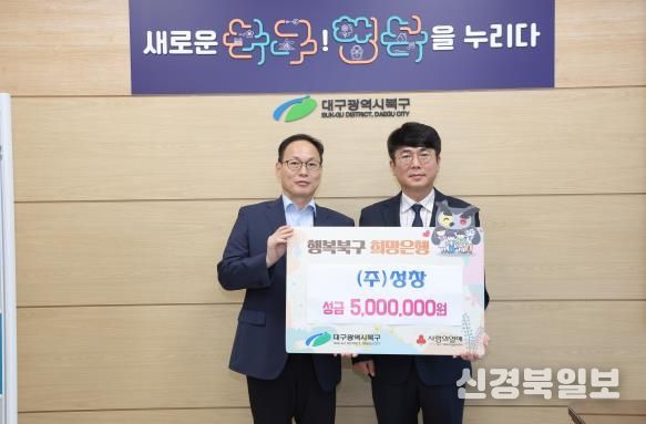 [ 신경북일보 ] (주)성창에서는 9월 16일 북구 저소득층 지원을 위한 성금 500만원을 대구 북구청에 기탁했다.