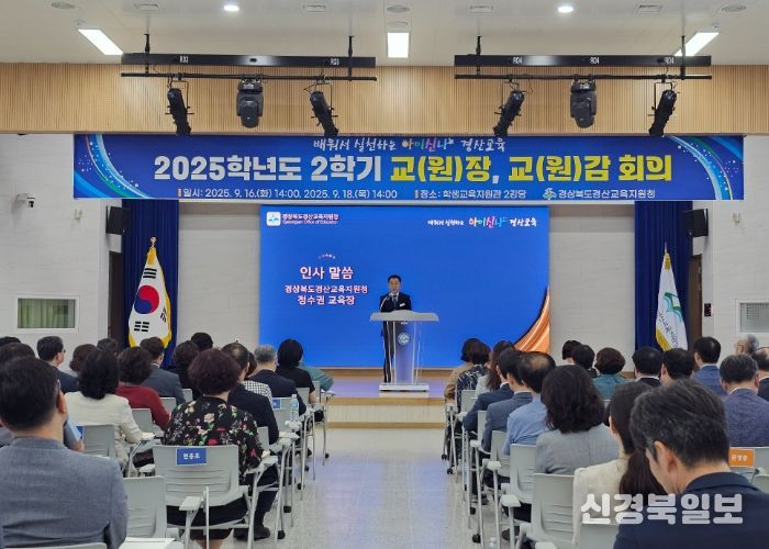 [ 신경북일보 ] 경상북도경산교육지원청은 9월 16일과 9월 18일 14:00에 학생교육지원관 2강당에서 유, 초, 중, 고, 특수, 각종학교 교(원)장 및 교(원)감을 대상으로 2025학년도 2학기 회의를 개최했다.
