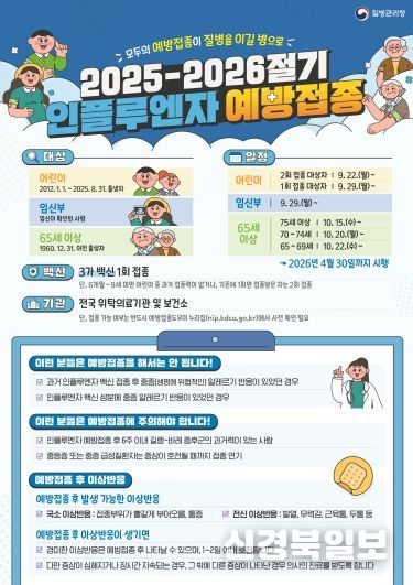 9월 22일부터는 어린이 2회 접종 대상자(생후 6개월 이상 9세 미만 처음 접종 대상자), 9월 29일부터는 어린이 1회 접종 대상자 (9세 이상 13세 이하)와 임신부 접종이 시작되며 오는 2026년 4월 30일까지 접종한다.