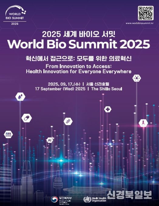 [ 신경북일보 ] 보건복지부는 세계보건기구(WHO, World Health Organization)와 공동으로 9월 17일 서울 신라 호텔에서 ‘혁신에서 접근으로: 모두를 위한 의료 혁신’을 주제로 '2025 세계 바이오 서밋(WORLD BIO SUMMIT 2025)'을 개최한다고 밝혔다.