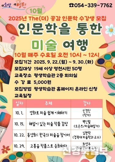 [ 신경북일보 ] 영천시 평생학습관(관장 정경자)은 22일부터 30일까지 ‘2025년 하반기 The(더) 공감 인문학 특강’ 10월 수강생을 모집한다.