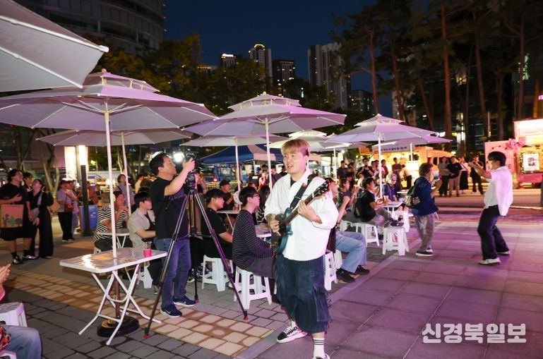 특히 공원 중앙 입구에서는 대구시 동성로 청년 버스킹 팀의 공연이 펼쳐져 축제 분위기를 더했으며, 초청 가수 ‘디핵’의 무대가 이어져 열띤 호응을 얻었다.