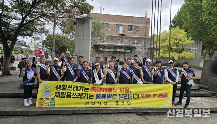 [ 신경북일보 ] 경산시 환경관리원 노동조합은 18일 노조 창립 20주년을 맞이하여 영남대학교 정문 및 압량읍 농협사거리 일원에서 환경관리원 23명이 참여한 가운데 ‘올바른 생활쓰레기 배출 캠페인’을 전개했다고 밝혔다.