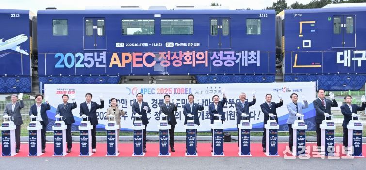 [ 신경북일보 ] 대구광역시와 경상북도는 공동협력의 일환으로 9월 22일 오후 3시, 대구 도시철도 3호선 칠곡차량기지에서 2025년 APEC 정상회의 성공 개최를 기원하는 ‘대구경북 APEC 열차’ 출발 행사를 개최했다.
