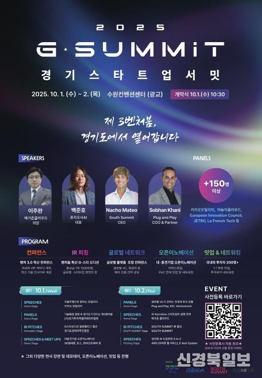 [ 신경북일보 ] 국내 최고 수준의 글로벌 스타트업 투자 박람회인 ‘경기 스타트업 서밋(G-SUMMIT)’이 오는 10월 1일부터 2일까지 수원컨벤션센터에서 열린다.
