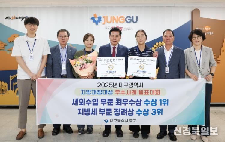 [ 신경북일보 ] 대구 중구는 대구광역시와 한국지방세연구원이 주관한 ‘2025년 지방재정대상 우수사례 선정대회’에서 세외수입 부문 최우수상(1위), 지방세 부문 장려상(3위)을 받았다고 밝혔다.