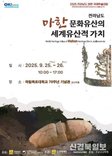 [ 신경북일보 ] 국가유산청 국립문화유산연구원 국립나주문화유산연구소는 전라남도와 함께 9월 25일부터 26일까지 국립목포대학교 70주년 기념관(전남 무안군)에서 '전라남도 마한 문화유산의 세계유산적 가치'를 주제로 국제학술대회를 개최한다.