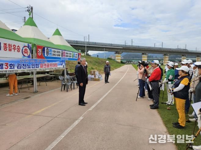 [ 신경북일보 ] 김천시는 대한노인회 김천시지회 주관으로 23일, 파크골프 선수와 심판, 운영위원 60여 명이 참석한 가운데 김천파크골프장에서 『김천시 노인회 파크골프대회』를 개최했다.