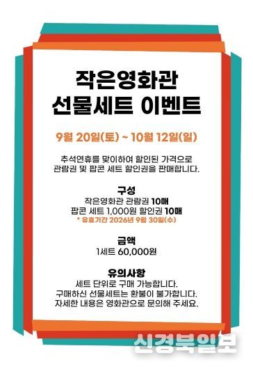 [ 신경북일보 ] 성주별고을시네마(창의문화센터 3층)는 민족 대명절 추석을 맞아 9월 20일부터 10월 12일까지 ‘추석맞이 선물세트 이벤트’를 진행한다.