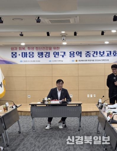 [ 신경북일보 ] 경상북도의회 '경상북도 학생마음 건강교육 정책연구회' 대표인 황두영 의원(구미2, 국민의힘)은 9월 23일 도의회 다목적실에서 열린 ‘쉼과 회복, 학생 정신건강을 위한 몸·마음 챙김 연구용역 중간보고회’를 주재하며, 학생 정신건강 문제의 심각성을 다시금 환기시켰다.