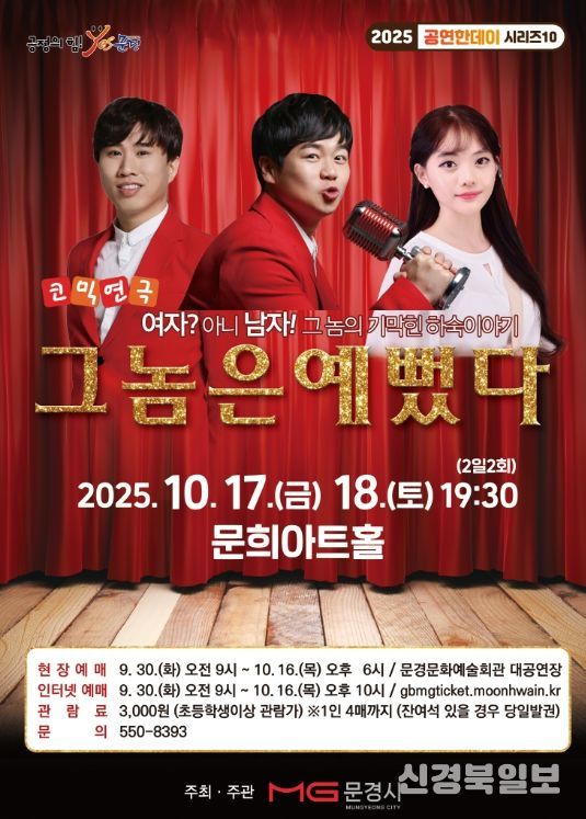 [ 신경북일보 ] 문경문화예술회관에서는 KBS, MBC 공채출신 개그맨들이 펼치는 연극‘그놈은 예뻤다’공연을 10월 17일 19:30, 18 19:30 (2일2회) 문희아트홀에서 상연한다.