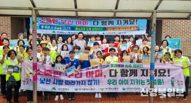 [ 신경북일보 ] 대구 중구는 25일 대구시, 중부경찰서, 경북대사범대학부설초등학교 교직원과 학생, 중구 안전보안관, 대구안전생활실천시민연합 등과 함께 경북대사범대학부설초등학교 일원에서 어린이 유괴 예방 캠페인을 했다.