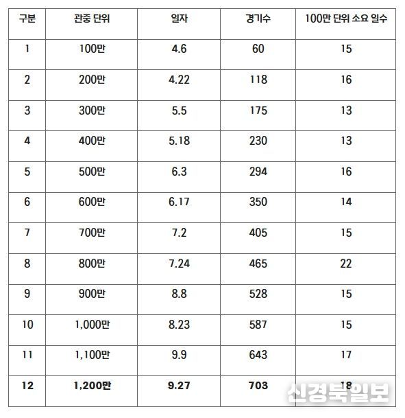 [ 신경북일보 ] 2025 신한 SOL뱅크 KBO 리그가 1,200만 관중을 달성했다.
