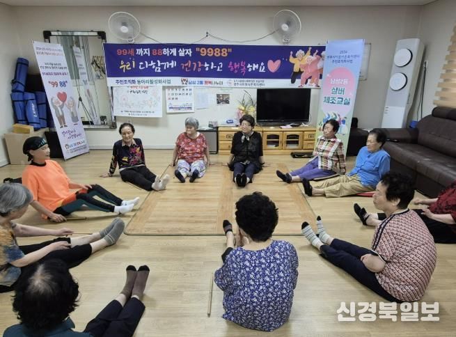 [ 신경북일보 ] 상주시이웃사촌복지센터는 9월 25일 남성2통 노인회관에서 남성2통 어르신 20여 명을 대상으로 노인의 사회적 고립 해소 및 삶의 질 향상을 위한 동아리 활성화 사업 ‘99세까지 88하게 살자 - 9988’을 진행했다.