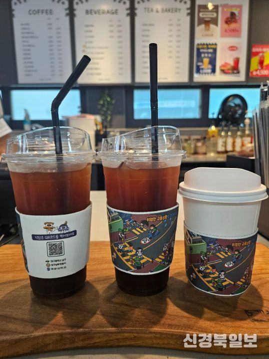 [ 신경북일보 ] 대구 남구는 대구남부경찰서 및 계명대학교와 협업하여 “교통안전 컵홀더”를 제작하여 남구청 내 카페를 비롯한 구청 주변 카페에 배부했다. 음료를 마시면서 생활 속 교통 위험 요소를 찾아보고 QR 코드 속 정답을 통해 교통안전 수칙을 익히는 계기를 마련하고자 제작하게 됐다.