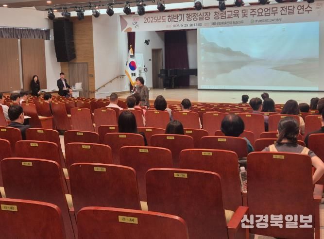 [ 신경북일보 ] 경상북도김천교육지원청은 9월 29일 13시 학생문화예술센터 드림마루에서 관내 초·중·고등학교 행정실장을 대상으로 청렴교육 및 주요업무 전달연수를 개최했다.