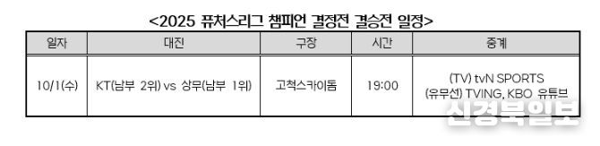 [ 신경북일보 ] 2025 퓨처스리그 챔피언 결정전 초대 챔피언을 자리를 놓고 겨룰 두 팀이 확정됐다.