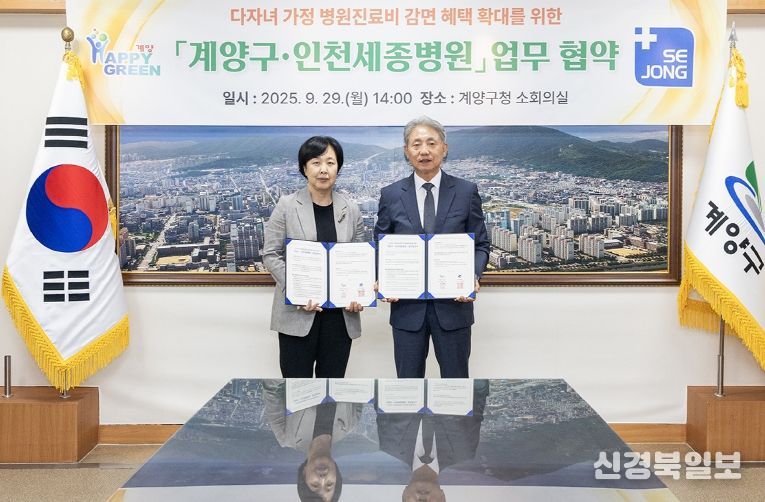 [ 신경북일보 ] 인천광역시 계양구는 9월 29일 인천세종병원(병원장 오병희)과 ‘다자녀 가정 병원진료비 감면 확대’를 위한 업무협약을 체결했다.