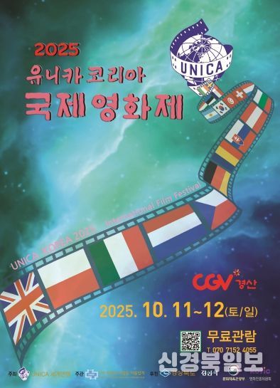 [ 신경북일보 ] 경산시에서는 2025 유니카 코리아 국제영화제(2025 UNICA KOREA International Film Festival)가 10월 11일과 12일 양일간 CGV 경산(3관)에서 개최된다고 밝혔다.