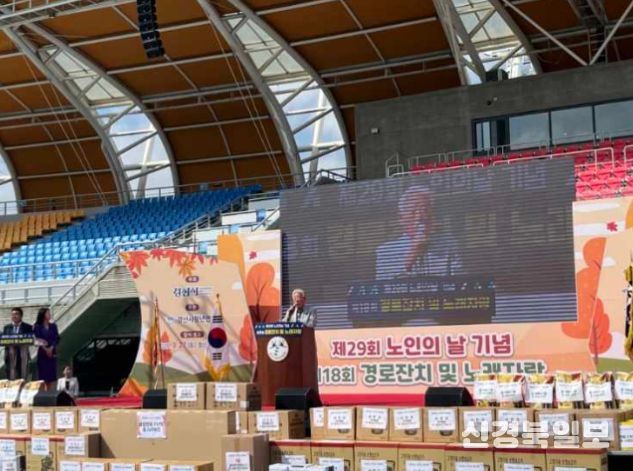 [ 신경북일보 ] 경산시는 10월 경로의 달을 맞아 27일 경산시민운동장에서 관내 어르신 7,000여 명을 모시고 제29회 노인의 날 기념행사 및 제18회 경로잔치를 개최했다.
