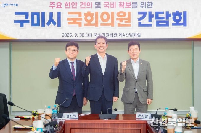 [ 신경북일보 ] 구미시는 9월 30일 국회를 방문해 구자근, 강명구 지역구 국회의원과 간담회를 열고 지역 주요 현안과 국비 확보 전략을 논의했다. 이날 간담회에는 김장호 시장을 비롯해 구미시 주요 간부 공무원 등 30여 명이 참석했다. 시는 현안 사업 추진 상황과 정부 예산 동향을 공유하며 국회 차원의 전략적 지원 방안을 모색했다.