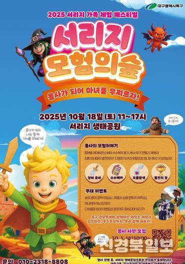 [ 신경북일보 ] 대구 북구청은 오는 10월 18일 동호동 서리지 생태공원 일원에서 '2025 서리지 가족 체험 페스티벌 – 서리지, 모험의 숲'을 개최한다고 밝혔다.
