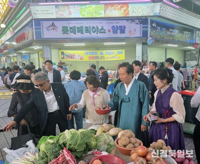 [ 신경북일보 ] 안동시는 지난 3월 발생한 대형산불로 경기 침체의 어려움을 겪고 있는 전통시장 활성화를 위해, 9월 29일(월)부터 안동중앙신시장, 안동구시장, 용상시장, 풍산시장 일원에서 추석맞이 장보기를 실시했다.