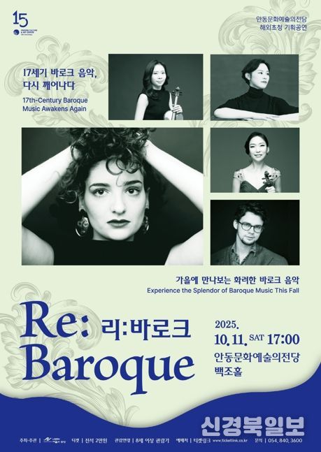 [ 신경북일보 ] 안동문화예술의전당은 다양한 장르의 특별기획공연으로 수준 높은 문화예술을 접할 수 있는 기회를 확대하고 있다. 10월 11일 금요일 오후 5시 안동문화예술의전당 백조홀에서는 'Re:baroque(리:바로크) 다시 깨어나는 바로크 음악' 무대가 열린다.