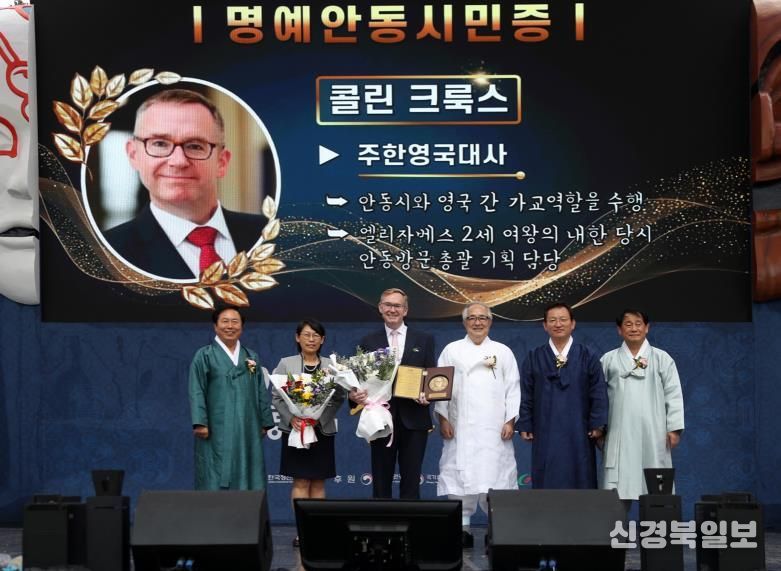[ 신경북일보 ] 안동시는 지난 10월 3일 열린 제23회 ‘안동의 날’ 기념식에서 콜린 제임스 크룩스(Colin James Crooks) 주한영국대사에게 명예안동시민증을 수여했다고 밝혔다.