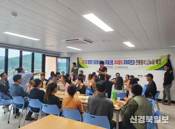 [ 신경북일보 ] 남영양농협은 지난 10월 3일 영양군 농업근로자 기숙사에서 라오스 출신 공공형 계절근로자 30명과 지역주민이 함께하는‘추석맞이 전통음식 나누기' 행사를 가졌다.