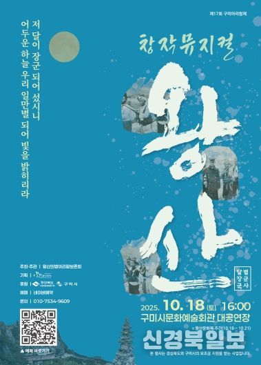 [ 신경북일보 ] 구미시는 ‘2025 제17회 구미아리랑제 창작뮤지컬 왕산’을 10월 18일 오후 4시 구미문화예술회관 대공연장에서 개최한다. 경상북도와 구미시가 후원하는 이번 공연은 구미 출신 독립운동가 왕산 허위 선생의 일대기를 뮤지컬과 영남 지역 민요로 풀어내며, 당시 백성들의 항일정신과 민족의지를 생생하게 전할 예정이다.