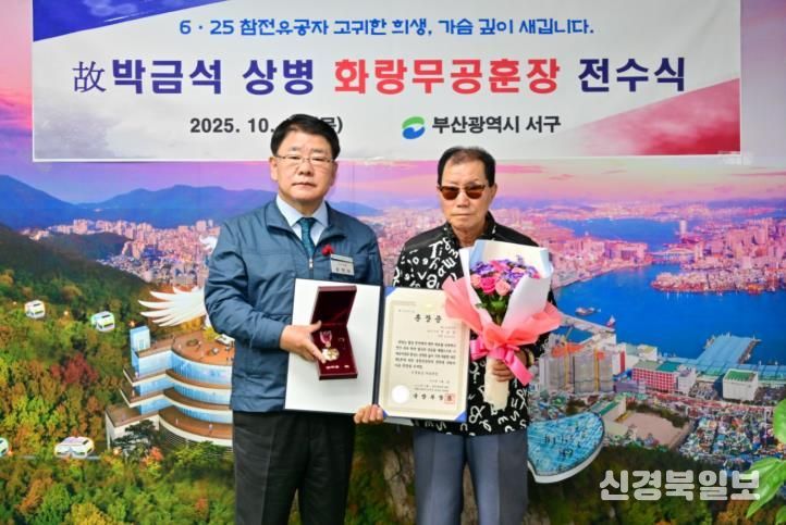 [ 신경북일보 ] 부산광역시 서구는 지난 16일, 6·25전쟁에 참전해 공을 세운 故박금석 님의 조카 박정진 씨에게 화랑무공훈장을 전수했다.