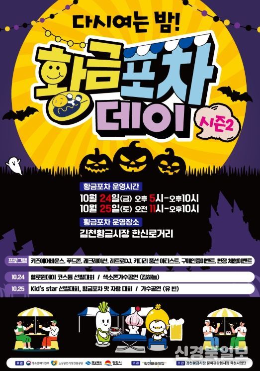 [ 신경북일보 ] 김천시에서는 황금시장상인회가 10월 24~25일 ‘다시 여는 밤, 황금포차 데이’를, 부곡맛고을상인회(회장 김동건)가 25~26일 ‘부곡맛고을 축제, 스위치 온’을 각각 개최한다고 밝혔다.