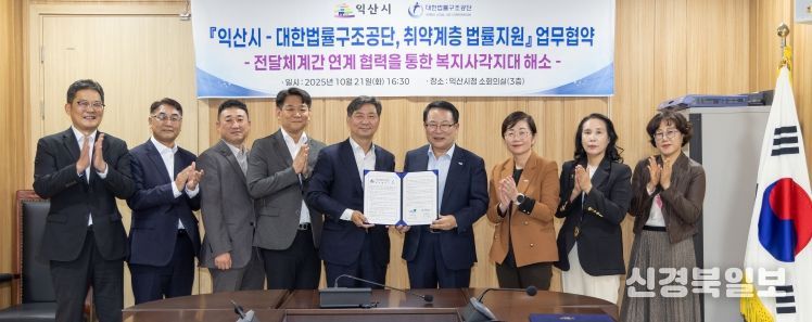 [ 신경북일보 ] 익산시는 21일 시청 소회의실에서 대한법률구조공단과 '취약계층 법률 지원 업무협약'을 체결했다.