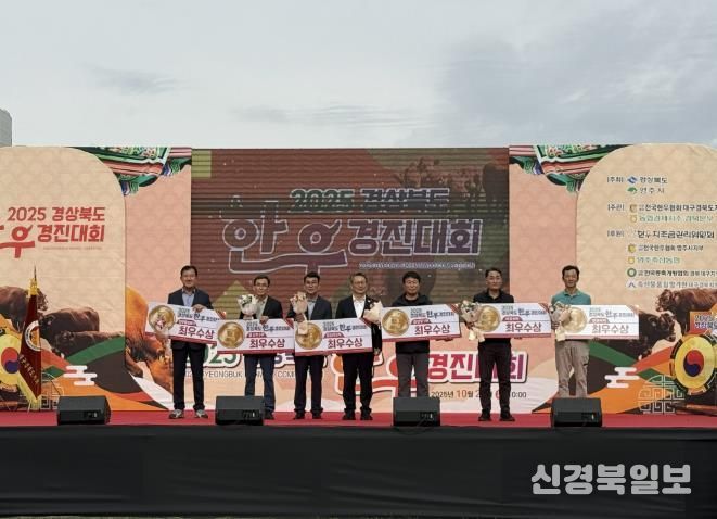 [ 신경북일보 ] 예천군은 21일, 영주시 문정둔치에서 열린 ‘2025년 경상북도 한우경진대회’에서 예천군 풍양면 김영휘 씨가 암송아지 부문 최우수상을 수상해 예천한우의 우수성을 널리 알렸다고 밝혔다.