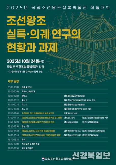 [ 신경북일보 ] 국가유산청 국립고궁박물관 국립조선왕조실록박물관은 10월 23일부터 24일까지 실록박물관 등 강원도 평창 일원에서 ‘조선왕조실록·의궤 연구의 현황과 과제’를 주제로 학술행사를 개최한다.