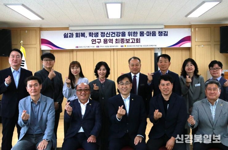 [ 신경북일보 ] 경북도의회 의원연구모임인'경상북도 학생 마음건강 교육 정책연구회'(대표 황두영 의원)는 10월 21일 구미시 도량동 행정복지센터에서 ‘쉼과 회복, 학생 정신건강을 위한 몸·마음 챙김 연구용역’ 최종보고회를 개최했다.