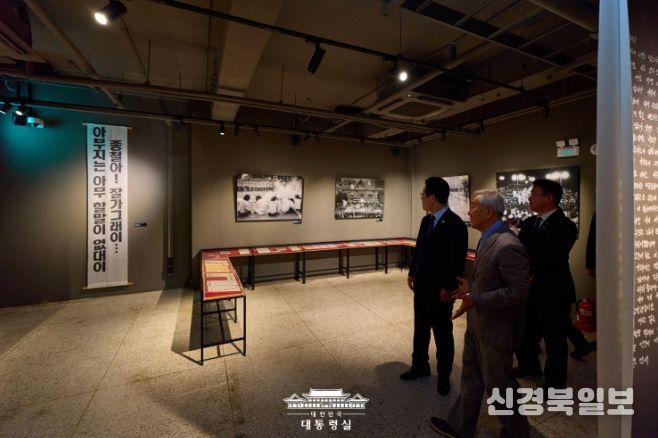 이 대통령은 故 박종철 열사가 고문을 받다 숨진 509호와 민주화운동청년연합 의장으로 활동하다 붙잡혀 고초를 겪었던 故 김근태 전 의원 조사실인 515호 등 전시관을 모두 살펴봤다.