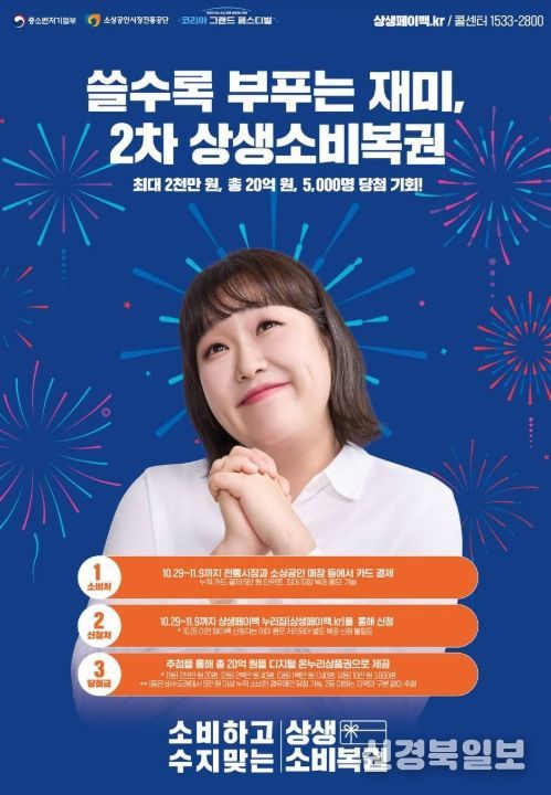 [ 신경북일보 ] 중소벤처기업부는 29일 국가 단위 대규모 소비축제 '코리아 그랜드 페스티벌(Korea Grand Festival)」의 일환으로 상생소비복권 이벤트와 디지털 온누리상품권 환급행사를 추진한다고 밝혔다.