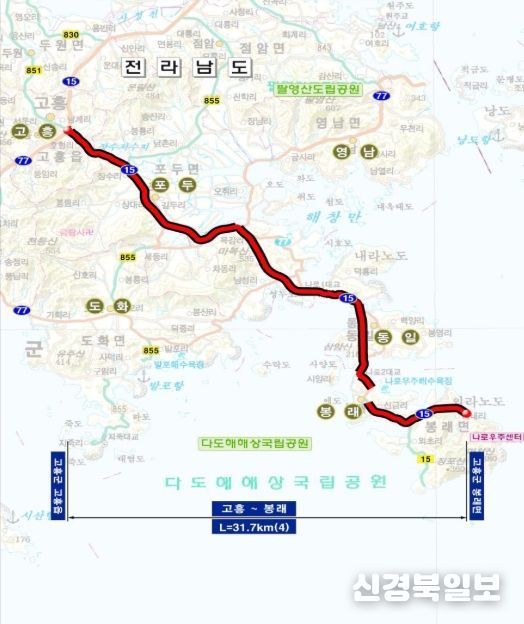 [ 신경북일보 ] 국토교통부는 8월 21일 열린 재정사업평가위원회(기획재정부 주관)에서 신속 예비타당성조사를 통과한 ‘국도 15호선 고흥~봉래 확장사업’의 신속한 후속절차 추진을 위하여 『제5차 국도・국지도 건설계획(2021~2025)』을 10월 30일 변경・고시할 예정이다.